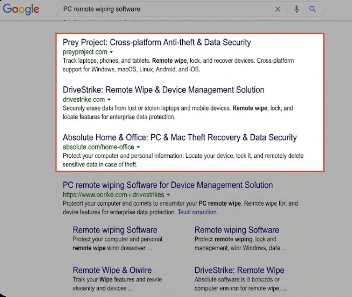 Prey Project: Excellent for cross-platform remote locking and data wiping. DriveStrike: A heavy-hitter for remote wipe and data protection. Absolute Home & Office: Provides "persistence" technology that can wipe a drive even if the OS is reinstalled.